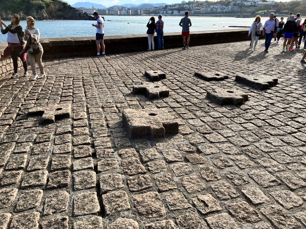 Lo que empieza cuando subes las escaleras del puerto marítimo es el Paseo Nuevo que rodea todo el Monte Urgull hasta llegar al Kursaal. Es un paseo muy chulo, al borde del mar y en el que la olas golpean contra las rocas y saltan, hay veces que es un espectáculo.