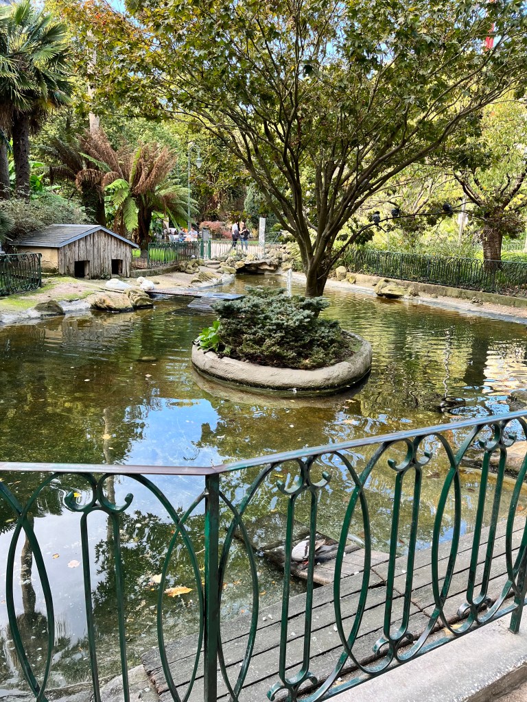 Plaza Gipuzkoa con un estanque para cisnes y en la que en Navidades montan un Belén gigante.