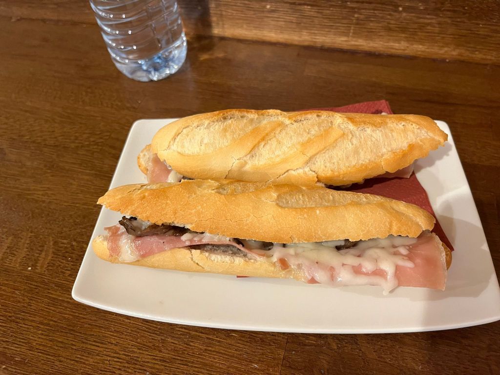 El montadito Quejas del bar con el mismo nombre, Las Quejas es otro de los típicos. Es un pintxo con jamón, setas a la plancha y queso de Cameros fundido servido entre pan y pan.