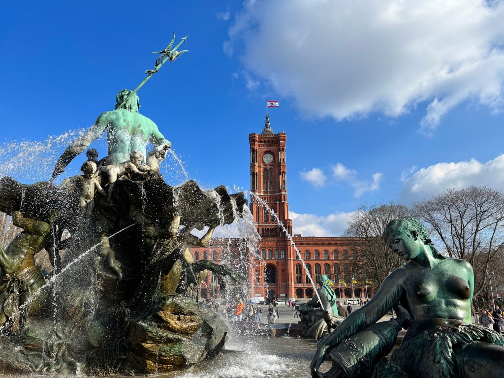 En Alexanderplatz también encontrarás la fuente de Neptuno y justo a su izquierda el famoso ayuntamiento rojo de Berlín. El mercado navideño también lo hacen en Alexanderplatz.