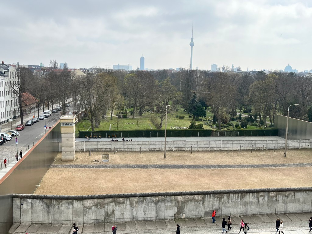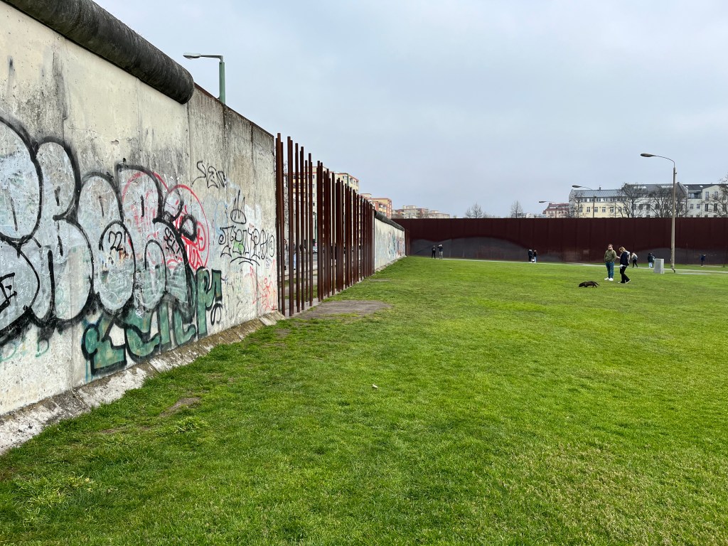 Os aconsejo hacer el freetour de la Guerra Fría para llegar hasta aquí así os contarán toda la historia. Hay un museo en la acera de enfrente al que puedes acceder gratis y subir a su azotea para ver desde arriba bien cómo era ese doble muro.