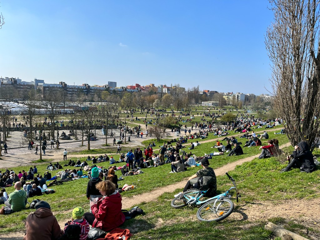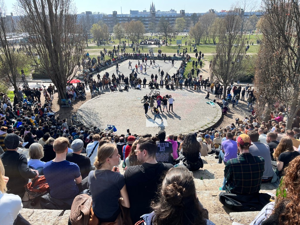 El plan favorito de los domingos de un berlinés es pasar el día en Mauerpark, desde las 11am hasta el anochecer se puede disfrutar de un mercadillo de segunda mano ENORME. También tienen una zona de puestos de comida y hay infinidad de artistas callejeros y grupos de música locales que ambientan el parque.